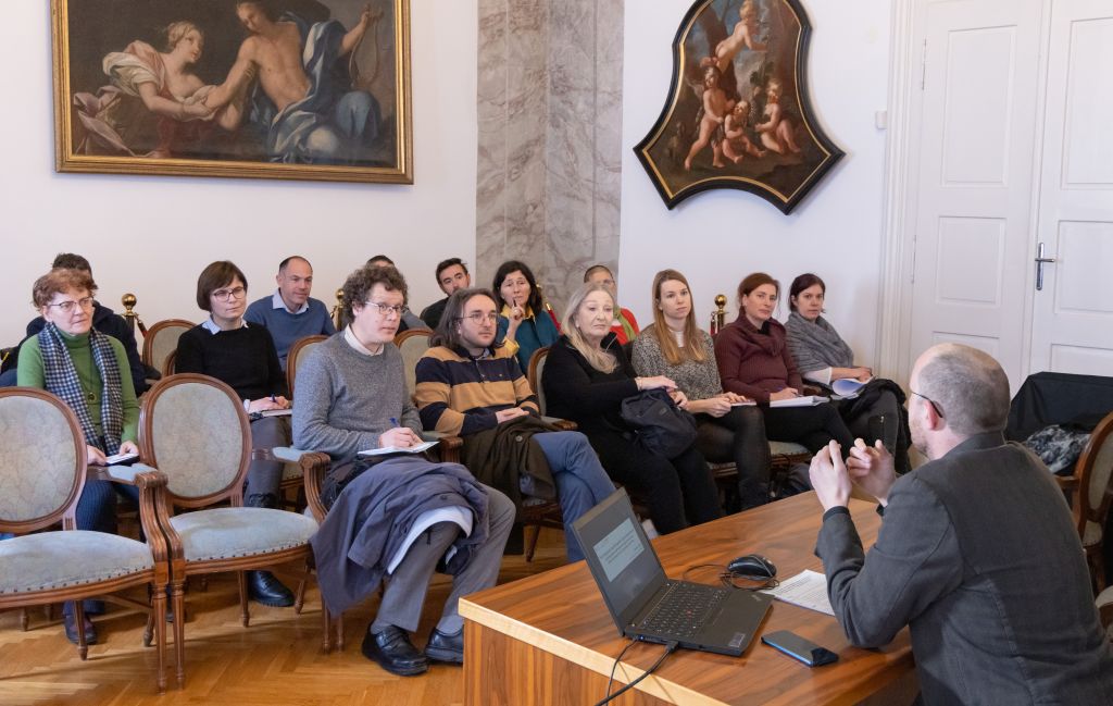 DR. GABRIELE ORLANDI: RAZISKOVANJE ALPSKE MODERNIZACIJE Z VIDIKA ŽIVLJENJA ITALIJANSKE POTUJOČE KATEDRE ZA KMETIJSTVO (1869–1929)DR. GAŠPER JAKOVAC: GLEDALIŠKA DEJAVNOST ANGLEŠKEGA SEMENIŠČA V RIMU IN ANGLEŠKI MISIJON (OK. 1579–1660) (27. 11. 2025)DR. SILVO TORKAR: ROKOPISNA ZBIRKA SLOVENSKIH KRAJEVNIH IMEN IZ METELKOVE ZAPUŠČINE (13. 11. 2025)DR. RACHEL TRODE: STAVKE LETA 1906: POZNOHABSBURŠKA OBLAST V BOSNI IN HERCEGOVINI (23. 10. 2025)DR. BERNHOLD SCHMID: ORLANDO DI LASSO IN NAJLEPŠI GLASBENI ROKOPIS NA SVETU (9. 10. 2025)DR. JOHANNES MATTES: USTVARJANJE »KLASIČNEGA« KRASA: HABSBURŠKI PROJEKTI »KULTIVACIJE«, (INTER)NACIONALIZEM IN VZNIK KRASOSLOVJA, 1860–1914 (12. 6. 2025)DR. BÖRRIES KUZMANY: ZGODOVINA NETERITORIALNE AVTONOMIJE: UPRAVLJANJE Z NARODNOSTNO RAZNOLIKOSTJO V SODOBNI EVROPI (15. 5. 2025)DR. CHIARA BORTOLOTTO: NAS BO DEDIŠČINA REŠILA? NESNOVNA DEDIŠČINA IN OBRAT K TRAJNOSTNEMU RAZVOJU (10. 4. 2025)DR. ANDREA QUADRI: SODELOVANJE IN KOLEKTIVNO DELOVANJE VIZUALNIH UMETNIKOV V ARGENTINI (20. 3. 2025)LUCIJA BALIKIĆ: PREOBRAZBA POLITIČNE MISLI VIKTORJA MURNIKA V LUČI VELIKE GOSPODARSKE KRIZE (6. 2. 2025))DR. WLADIMIR FISCHER-NEBMAIER: C. K. AVSTRIJA ZA ZAPRTIMI VRATI: IZVIRNO GRADIVO AVSTRIJSKIH VOJNIH KABINETOV 1914–1918 (16. 1. 2025)IVA JELUŠIĆ: VOJNA & ZABAVA: RAZISKOVALNI VPOGLEDI V NARODNOOSVOBODILNI BOJ (5. 12. 2024)