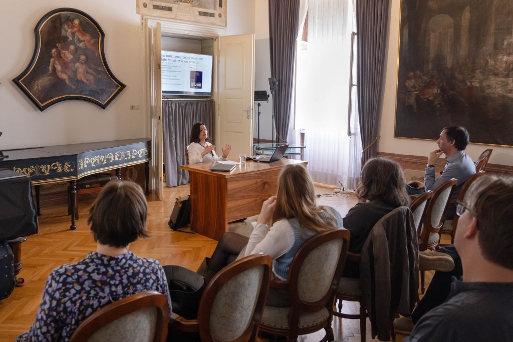 DR. ALMA IGRA: VITAMINI, KALORIJE, BELJAKOVINE IN SVETOVNI RED: KAKO JE ZNANOST O PREHRANI OBLIKOVALA SVET (12. 3. 2026)DR. KATIA PIZZI: MEJE V ČASU HLADNE VOJNE IN LJUDSKA ZGODOVINA V BRITANSKEM TISKU (26. 2. 2026)DR. GABRIELE ORLANDI: RAZISKOVANJE ALPSKE MODERNIZACIJE Z VIDIKA ŽIVLJENJA ITALIJANSKE POTUJOČE KATEDRE ZA KMETIJSTVO (1869–1929)DR. GAŠPER JAKOVAC: GLEDALIŠKA DEJAVNOST ANGLEŠKEGA SEMENIŠČA V RIMU IN ANGLEŠKI MISIJON (OK. 1579–1660) (27. 11. 2025)DR. SILVO TORKAR: ROKOPISNA ZBIRKA SLOVENSKIH KRAJEVNIH IMEN IZ METELKOVE ZAPUŠČINE (13. 11. 2025)DR. RACHEL TRODE: STAVKE LETA 1906: POZNOHABSBURŠKA OBLAST V BOSNI IN HERCEGOVINI (23. 10. 2025)DR. BERNHOLD SCHMID: ORLANDO DI LASSO IN NAJLEPŠI GLASBENI ROKOPIS NA SVETU (9. 10. 2025)DR. JOHANNES MATTES: USTVARJANJE »KLASIČNEGA« KRASA: HABSBURŠKI PROJEKTI »KULTIVACIJE«, (INTER)NACIONALIZEM IN VZNIK KRASOSLOVJA, 1860–1914 (12. 6. 2025)DR. BÖRRIES KUZMANY: ZGODOVINA NETERITORIALNE AVTONOMIJE: UPRAVLJANJE Z NARODNOSTNO RAZNOLIKOSTJO V SODOBNI EVROPI (15. 5. 2025)DR. CHIARA BORTOLOTTO: NAS BO DEDIŠČINA REŠILA? NESNOVNA DEDIŠČINA IN OBRAT K TRAJNOSTNEMU RAZVOJU (10. 4. 2025)DR. ANDREA QUADRI: SODELOVANJE IN KOLEKTIVNO DELOVANJE VIZUALNIH UMETNIKOV V ARGENTINI (20. 3. 2025)LUCIJA BALIKIĆ: PREOBRAZBA POLITIČNE MISLI VIKTORJA MURNIKA V LUČI VELIKE GOSPODARSKE KRIZE (6. 2. 2025))DR. WLADIMIR FISCHER-NEBMAIER: C. K. AVSTRIJA ZA ZAPRTIMI VRATI: IZVIRNO GRADIVO AVSTRIJSKIH VOJNIH KABINETOV 1914–1918 (16. 1. 2025)IVA JELUŠIĆ: VOJNA & ZABAVA: RAZISKOVALNI VPOGLEDI V NARODNOOSVOBODILNI BOJ (5. 12. 2024)